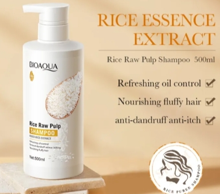 شامپو ضد شوره و کنترل کننده چربی و طراوت مو برنج بیوآکوا حجم 500 میل