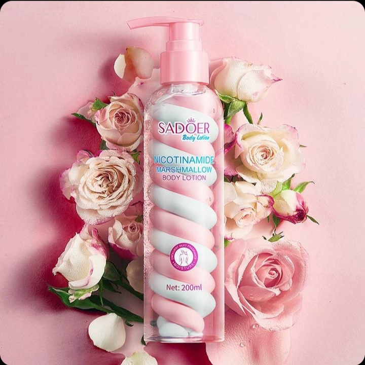 لوسیون بدن روشن کننده و خوشبو کننده و آبرسان و مرطوبکننده پوست بدن اصلی مارشمالو سادور نیکوتینامید،پرتقالی خونی که هردو بی نظیره 👌💯اصلی