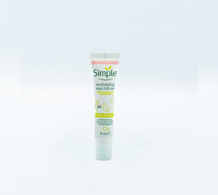 کرم دور چشم رولی سیمپل مدل Revitalising را بروی ناحیه اطراف چشم بزنید و با رولی که سر کرم است به صورت دورانی ماساژ دهید تا جذب شود .